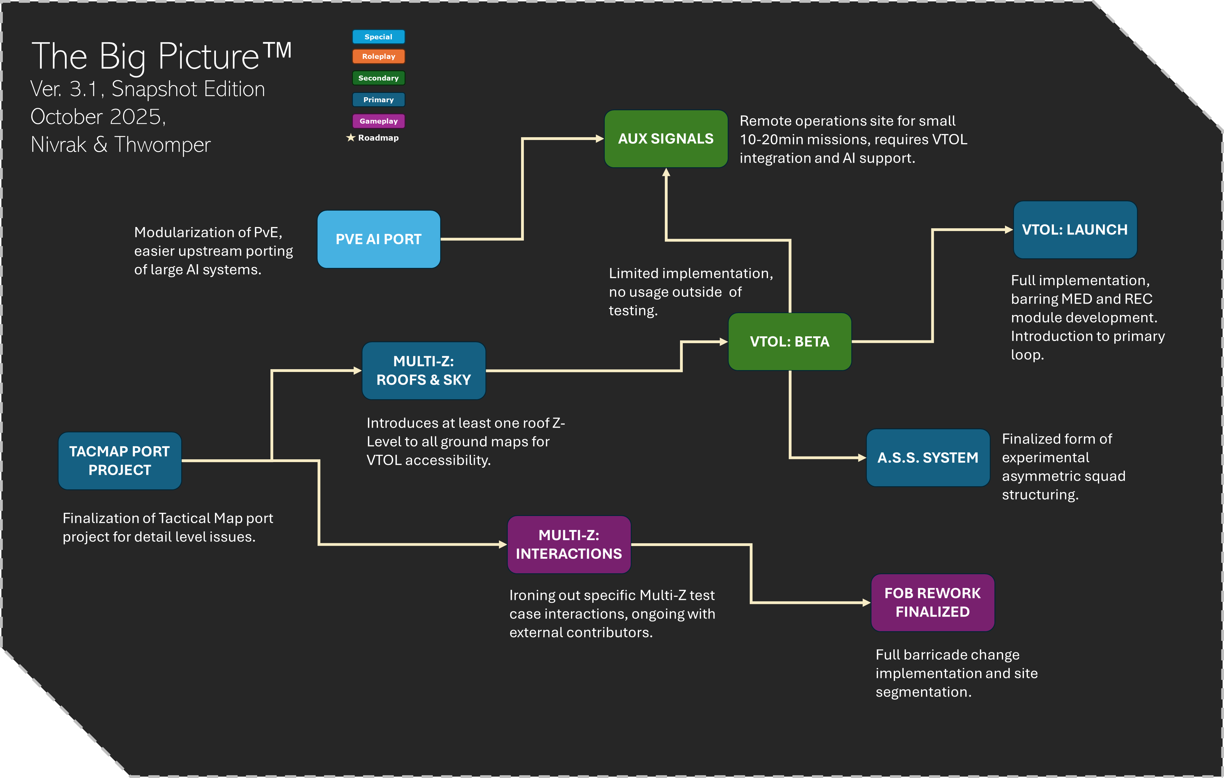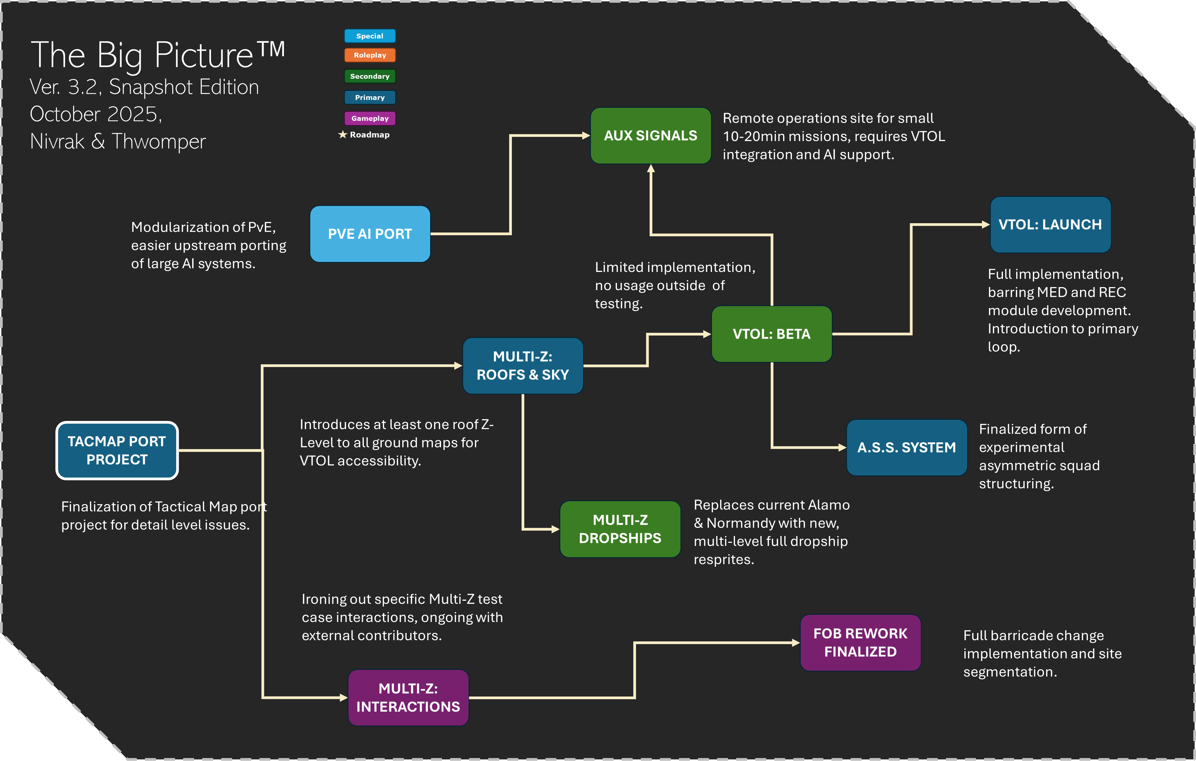 Short-term focus of projects for Nivrak and I, to keep the forum lurkers in the loop.