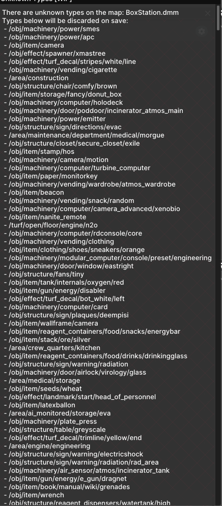 what you’re describing is just an updatepaths script, the thing is that you’d need the motivation to go through every single floor tile type on boxstation and find its’ closest counterpart on CM and typepath that, and then repeat that for nearly every single thing in the map. Just for fun I downloaded Boxstation and tried to hit it on strongDMM. here’s roughly 1/10th of the items that would need repathing. (Yes, that is a scroll wheel, it is a very long scroll)