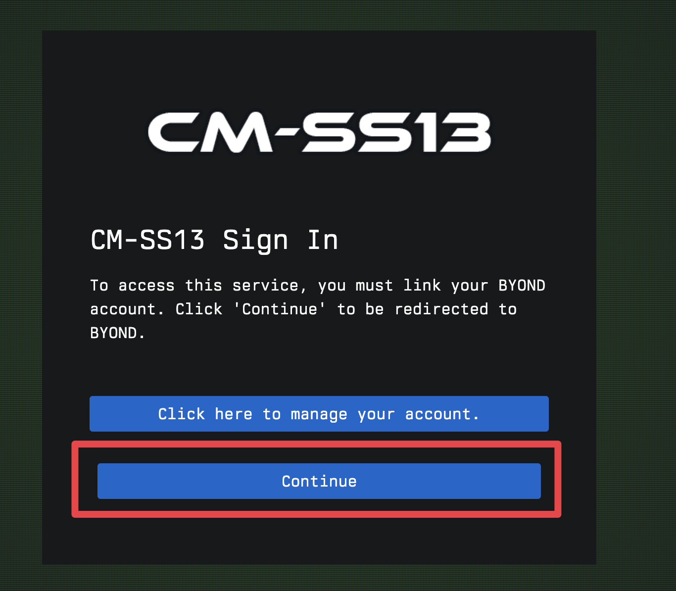 You will then be signed in directly as your CM-SS13 account, allowing access to your normal account in game.