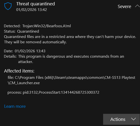 For Transparancy, CM is currently getting flagged by their Machine Learning tag as a program with few downloads that interacts with other software.