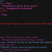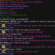 First of all, in regards to roleplay standards, I stated in the lines of text above this one, everything I say and do when playing a character is based in roleplay. I don’t kill someone in a roleplay scenario because I like killing people out of character, I do it because it’s roleplay, I’m forming a story that is purely fictional; furthermore me slinging harsh words and statements at you should be treated just the same. My character, Nash Calloway, is an erstwhile EVAC-3 fighter pilot with an immense ego that got grounded for a military-related crime I haven’t worked out yet (Nash is a relatively new character and I’m still ironing him out, bear with me). Nash does not enjoy being with the Falcons, much less being locked to flying a dropship. Nash’s treatment of your character, a perceived Falcon, is in-line with his character at large and is, in fact, the definition of roleplay. Again, I don’t hold anything against you, it’s just Nash’s attitude.