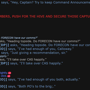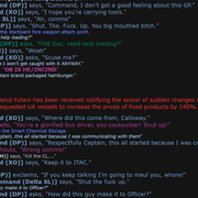 Continuing with the roleplay standard you rival me on, the later screenshots depict Nash’s conversations with the XO of the round, which Nash was at odds with. I remember specifically roleplaying Nash the way I did as a way to tick off the Captain, in the hopes of maybe getting transferred to a different post. I remember it very vividly. “I’m already at the bottom, it can’t get much worse.”