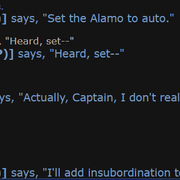 Going onto the communication thing, I remember specifically you confusing every thing I said to you. Your character had insulted Nash on his communication skills after Nash had simply asked “So what are you doing with the fulton?” I did not send this message to you to ask what the fulton did, but if you were going to take it or not. You asked “Do you want me to take the fulton?” I said “Do whatever you want, man.” You replied with something besides the conversation, I can’t remember, and eventually I wound us back on-topic by asking you “So what are you doing with the fulton?” as to ask you if you were taking it or not, you confused what I said and proceeded to turn it into a back-and-forth. In all, you took a confusion, that was bad on your part, and spun it into an argument. I don’t have screenshots of this stuff because it didn’t mean anything to me at the time, but I’m fairly certain everything I’ve said can be backed up by the chat logs of the round. If something’s a miss, leave it to confusion because again, I did not care for this interaction greatly.