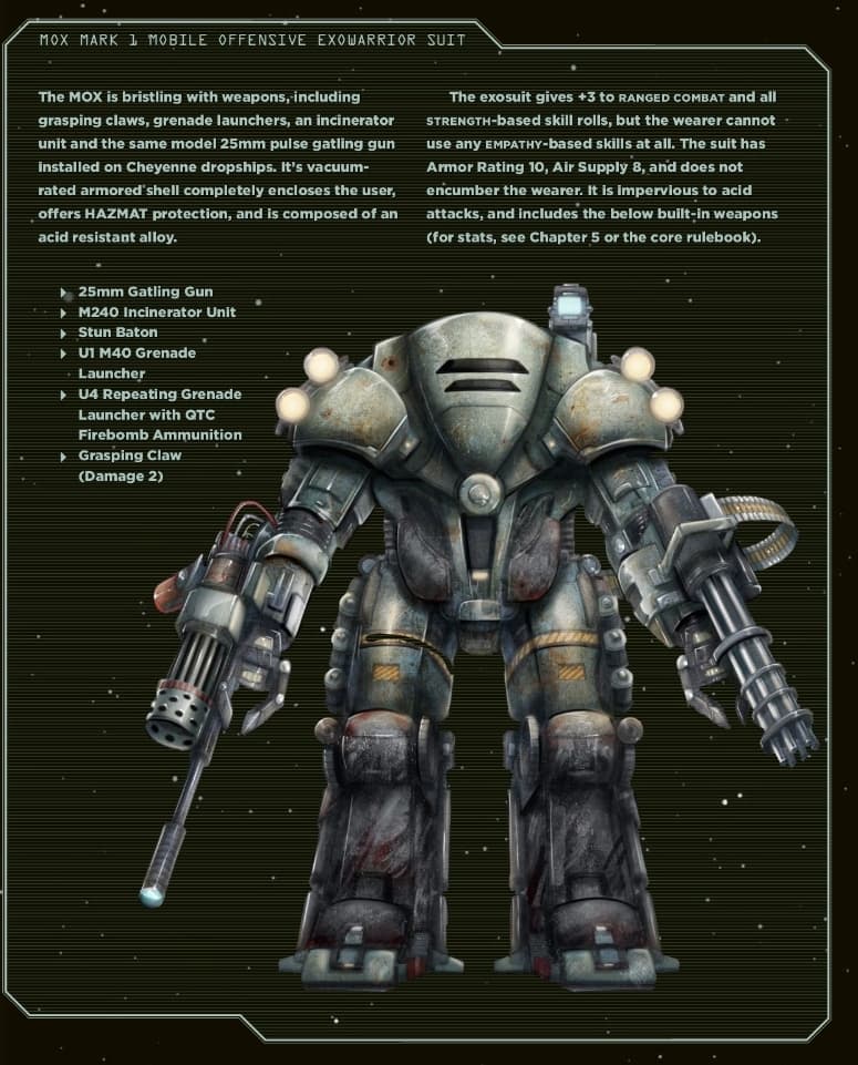 Imagine an APLU/Caterpillar with armor welded to it and machine guns riveted to the arms a-la a Technical in the hands of the Innies— and a focus on the Mk1/phased out armaments at large, and more general conflict in the vein of “our shit but aftermarket and tooled for farmers with a bone to pick.”