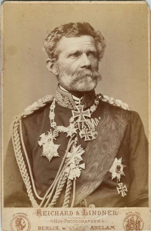 He is decorated with the Pour Le Merite, a medal only issued by the King of Prussia. The highest military honor of Prussia.