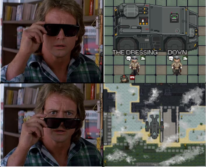 they were semi-regulated by having to fill them with fuel from jerrycans (just the same fuel as welding fuel, it wasn’t a very fancy system). i imagine that could also be a good limitation here and would make those using think in advance how they want to sustain it via packing or scavenging. other balance issues DID arise later on, namely blocking and researchers that took a minigun doing drivebys, but i think we could resolve those things easily here (vehicles on tgmc have caste hard-counters that have ranged attacks that do more damage to them). it could be that, lowering the health of the bike, allowing important castes to step over as you said, or something else.