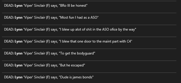 so yeah conclusion the round was a cluster fuck, i got fed totally incorrect information about the Hikwari ( the one reporting this) I did not ever authorize the usage of C4 on the CLs nor did I ever deputize anyone that round. the ASO and the SO was not doing their job and instead chasing down the CL.