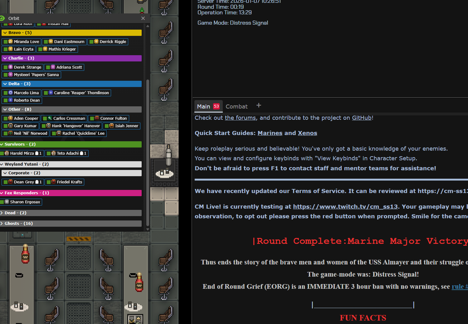 Colony survival is simple - everyone spawns as a surv. That’s it. Survs can still fix comms, encode it, use radios, get gear, weapons, guns, what have you and fight the hive. No crash, and a better balance for our low pop as fuck rounds. Further, lowpop as fuck rounds have issues with role filling as is. No doctors. No CTs, etc. a gaggle of survs have more rounded skills.