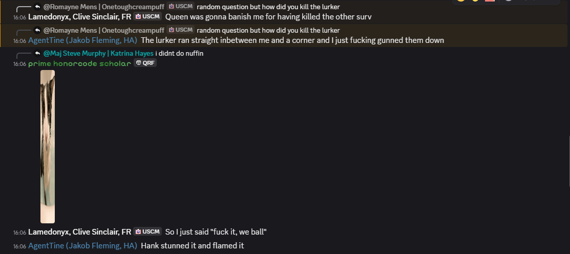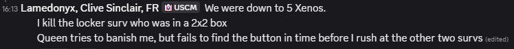 This gets around the 1 hour xeno ban and means xenos don’t get a larva back from the banishment. As this was very lowpop this would’ve had a significant detriment on xeno numbers since they suicided, if the round hadn’t ended shortly after due to a crash, but regardless.