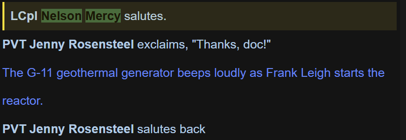 Private Smith Yi-Wesson kept asking me to pardon Aidel Curran, as he saved their life planet-side. The way they said it and supported Aidel were wholesome. God bless that man.