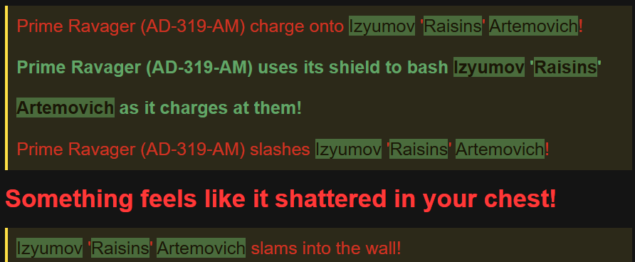 Front about to collapse, Vanguard bowls you over and nearly crits you but is forced to fall back after 3 slashes. You hobble back to your lines rather than being woybait or worse, in need of a time-consuming defib when now you can get splinted and GTFO.