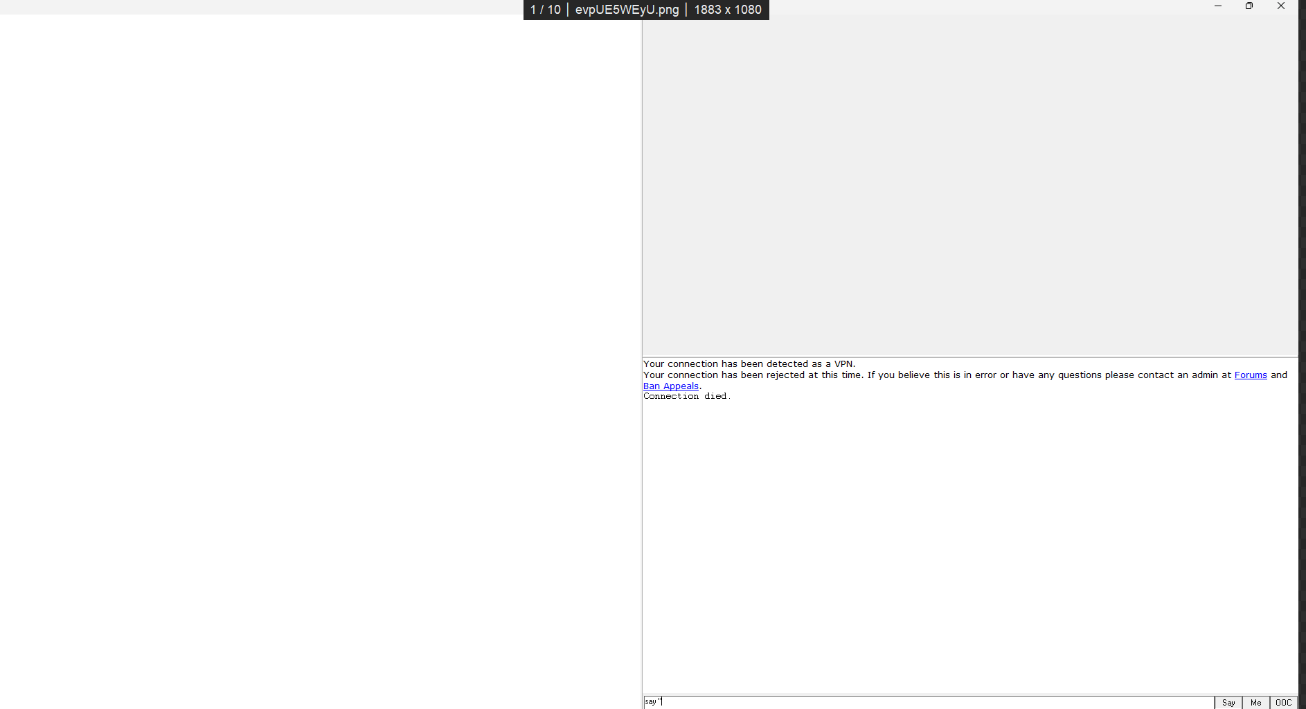 NA - Your connection has been detected as a VPN. Your connection has been rejected at this time. If you believe this is in error or have any questions please contact an admin at Forums and Ban Appeals.
