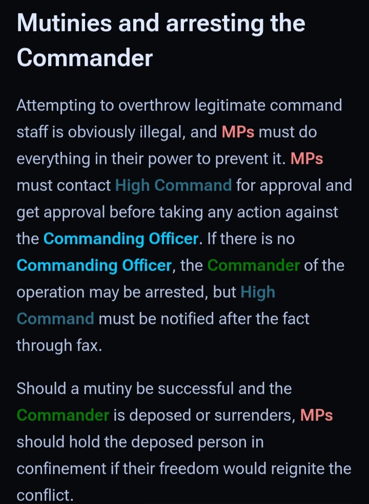 To the contrary, this is the current ruling as far as MP involvement in mutinies, to my knowledge. Might be confusing it with synths, who CAN choose remain neutral in a mutiny or choose to side with command.