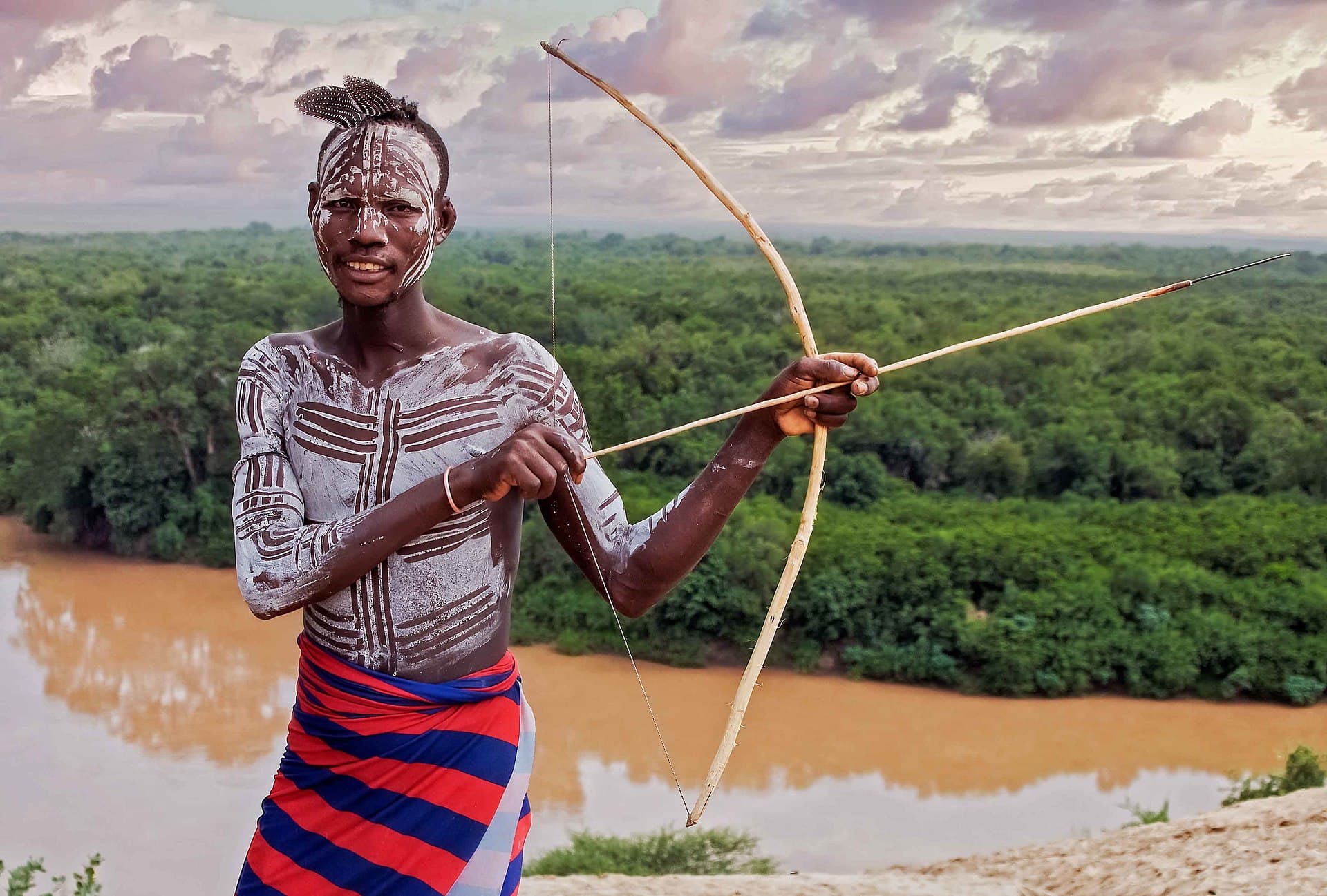 He is holding a self bow.