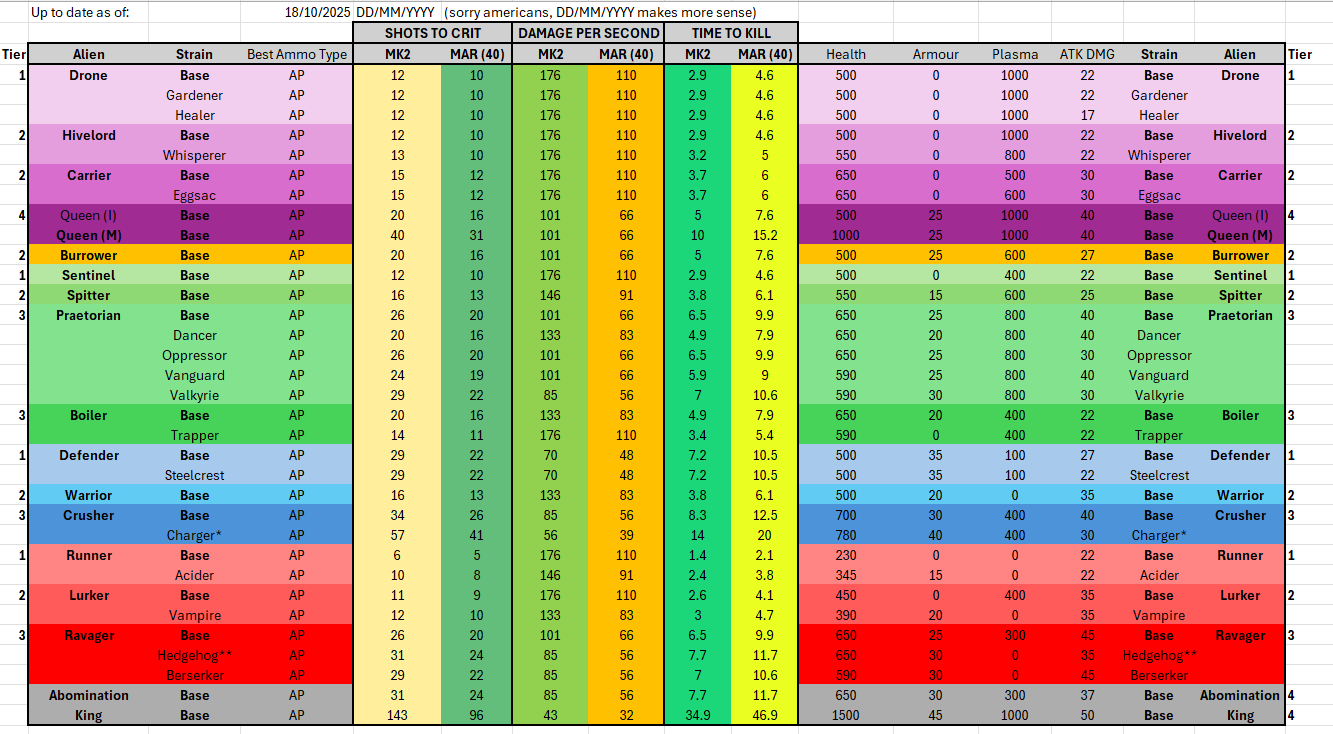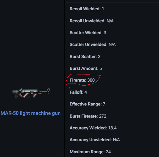 Where are you getting the DPS of the MAR-50 from? Because by just doing very basic maths ((Damage*RPM)/60), the DPS is 275, and not 184 which is in your sheet. Also, the MAR-50 isn’t as “inaccurate” as you present it as (20,8 accuracy of the Mk2, vs 18.4 of the MAR-50 (also has less scatter than the mk2)). Scatter is imo the worst part of most “inaccurate” guns.