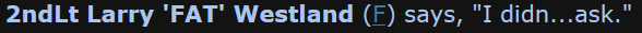 Larry comes from a family who have all served in both the United Americas and in the Past the United states at one time or another however none of them ever became an officer. Larry wanted to be the first to break that trend and like his nickname suggests he went big.