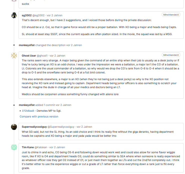 Correct so fucking fix the ranks department heads should be captain and so should be major co should be lt. col, col. Hell I will fix the fucking code.