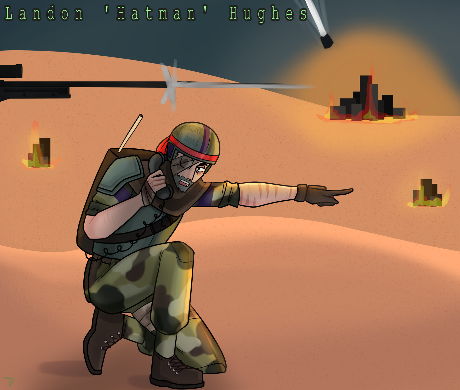 - e.g. M39, 4 UNGA flasks, mag harn, MD, scarf, eyepatch, drip, etc.