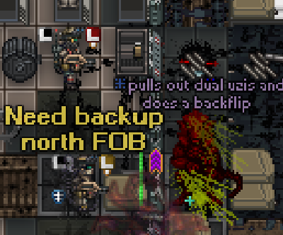E: personally, I don’t consider terms like turtle/spitter/bird to be inherently RPful, since chat is canonically an English translation of the unknowable xeno speech, so they should just be the normal words for those things (I still use said “xeno terms” most of the time but don’t get bothered by people neglecting to do so)